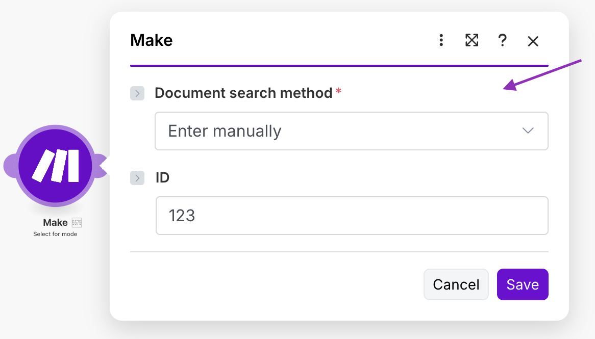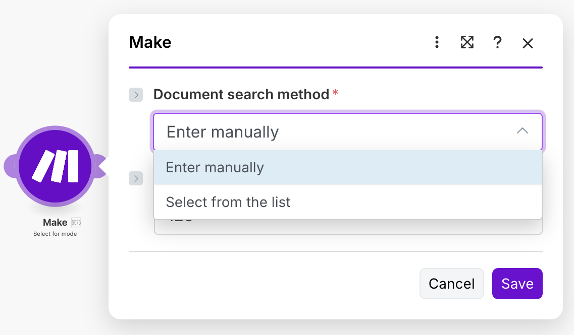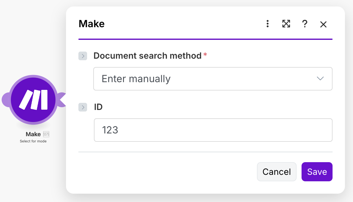 The ID finder can include either one single search criterion (keyword or exact match) or multiple search criteria. It is important to note that the number of results the ID finder will return is limited both on the Make platform side and the app side. Because of this, we do not advise users to leave the search field empty to return all results, as this information can be misleading.