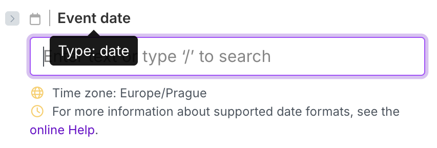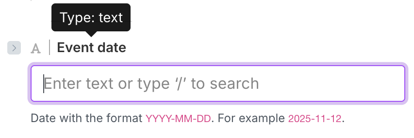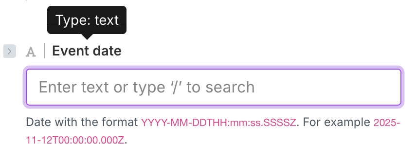 Exception: If the endpoint accepts date only or time only, use the `text` parameter with a clear hint and example.