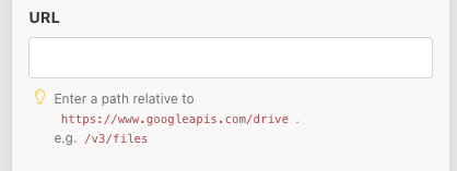 * The hint under the URL should contain the correct prefix path of the URL, together with an example of a postfix path of the URL.