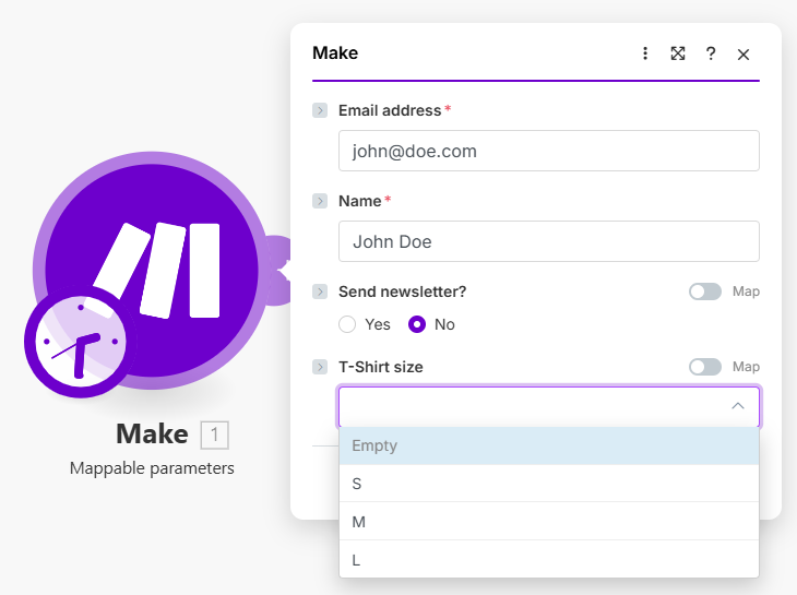 Learn more about [best practices regarding mappable parameters](https://developers.make.com/custom-apps-documentation/best-practices/input-parameters/mappable-parameters).