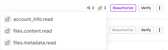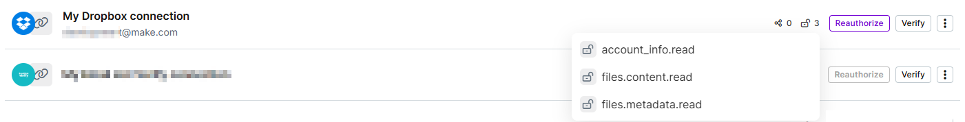 Every row with a connection has a lock icon with a number. If there are scopes available in the connection, the number is larger than 0.