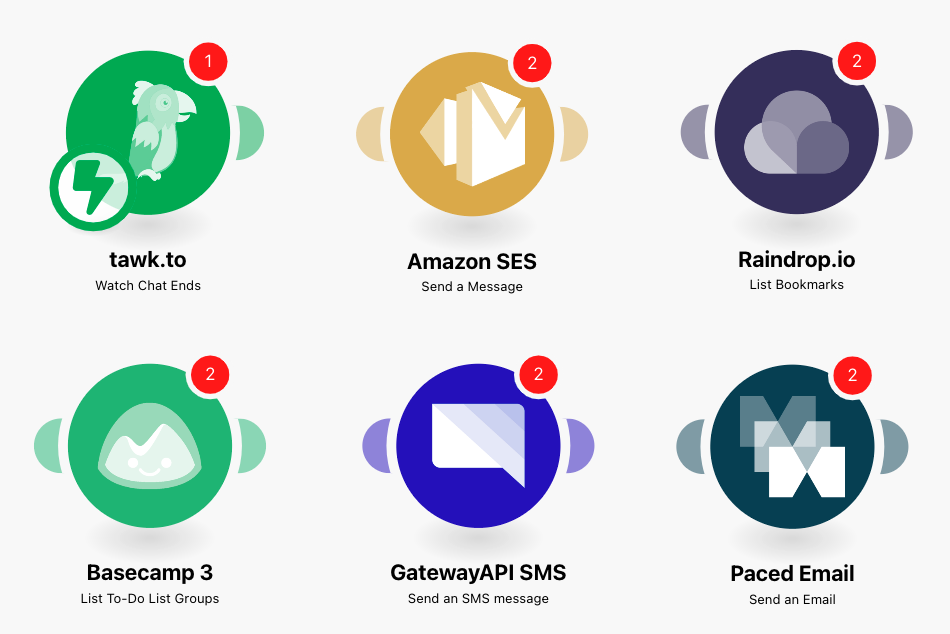 Every app in Make has its own logo and color. The combination of logo and color represents the app. With a distinct logo and color, the users quickly see which module belongs to which app.