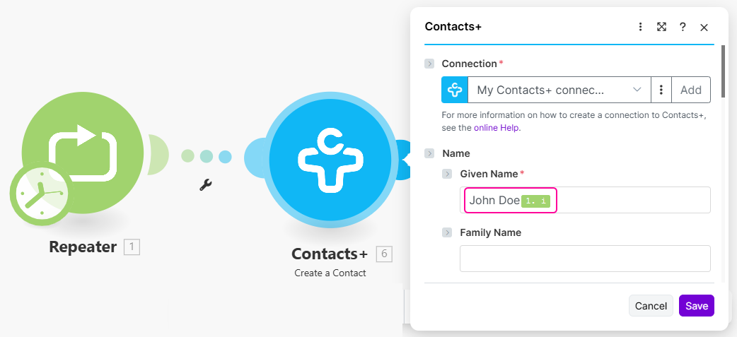 Use the **Flow Control > Repeater** module to do this, which also returns the ID of the repeat.