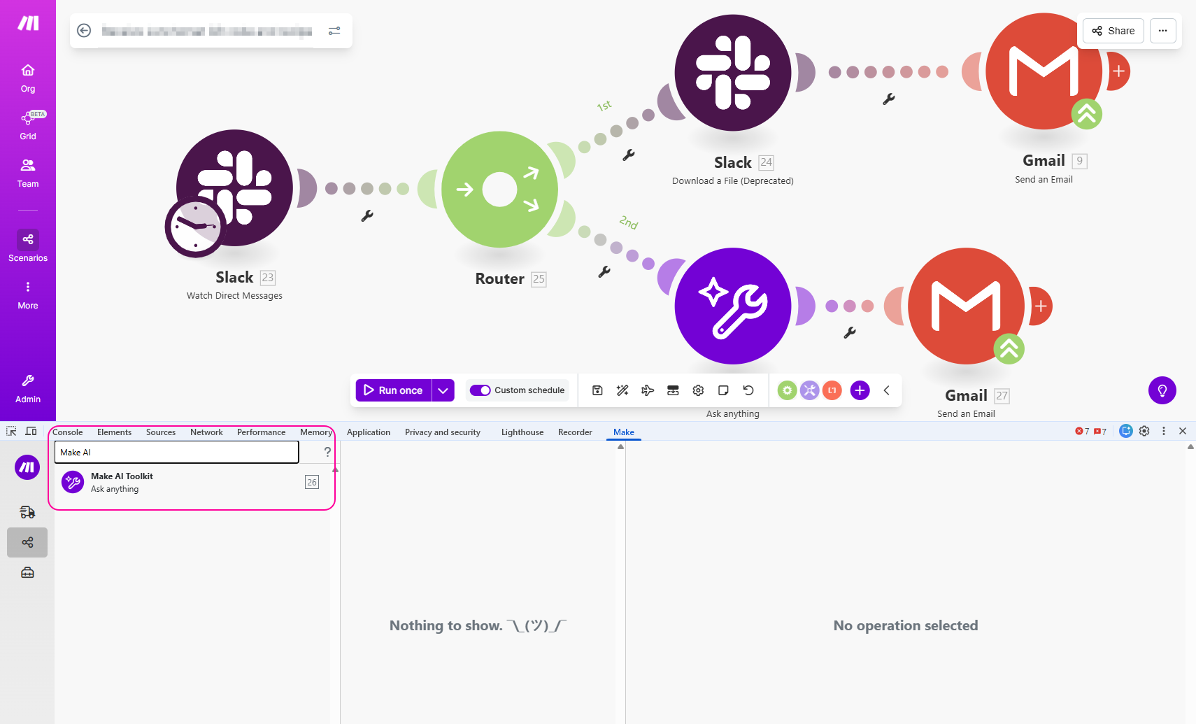 The Scenario Debugger shows you the historical logs of your scenario, including the history of the scenario runs. You can search for modules by their name or ID.